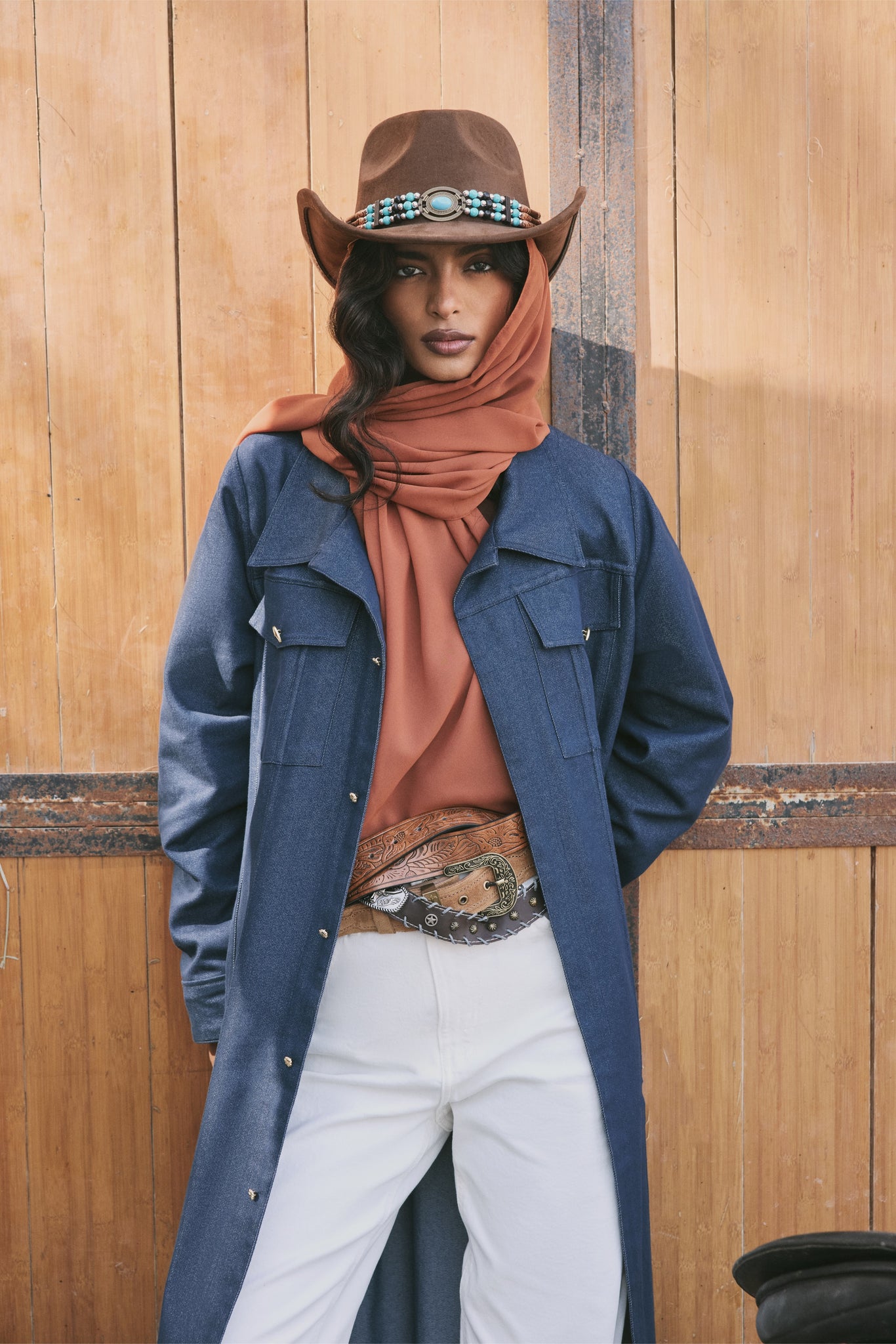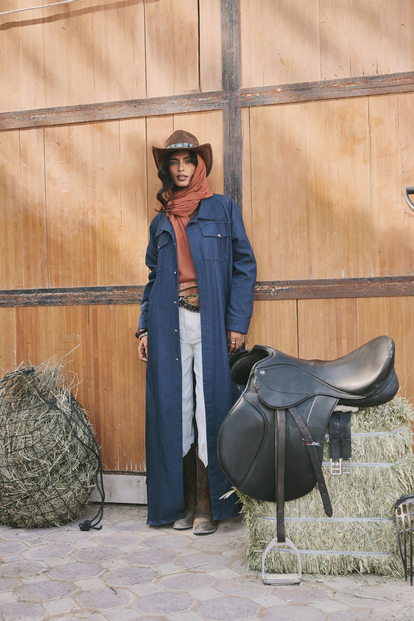 The Dakota is a refined denim abaya designed for effortless everyday wear. Cut in a clean, straight silhouette, it features chest flap pockets finished with custom ginkgo buttons, adding a subtle signature detail unique to the piece. Crafted from structured yet comfortable denim, Dakota layers easily over any look—modern, versatile, and quietly bold.